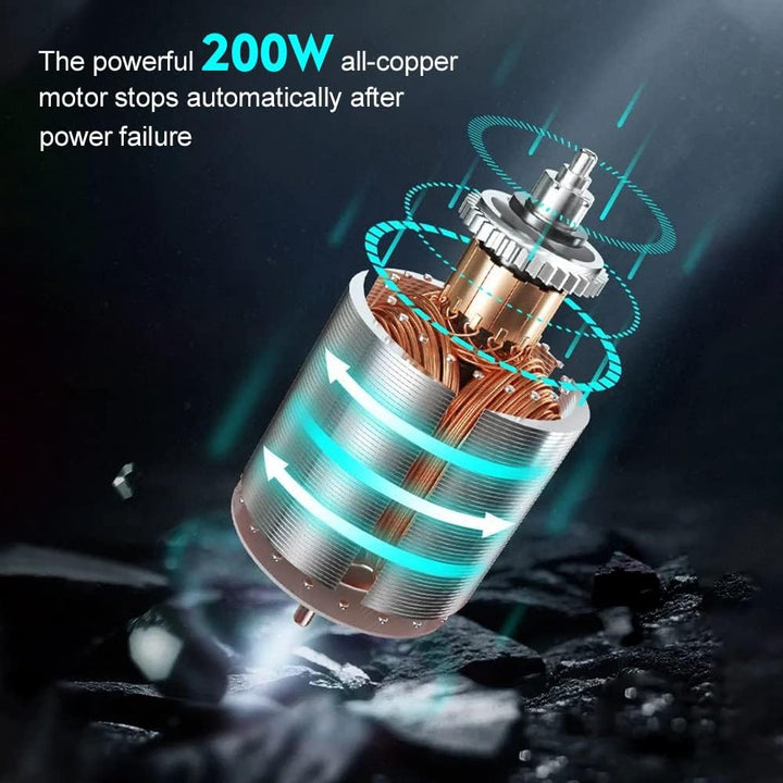 The cordless, lightweight, and compact design helps you get rid of the shackles of the power supply. The pure copper core brushless motor runs smoothly and efficientry. Strong performance and small vibration, with stable performance.