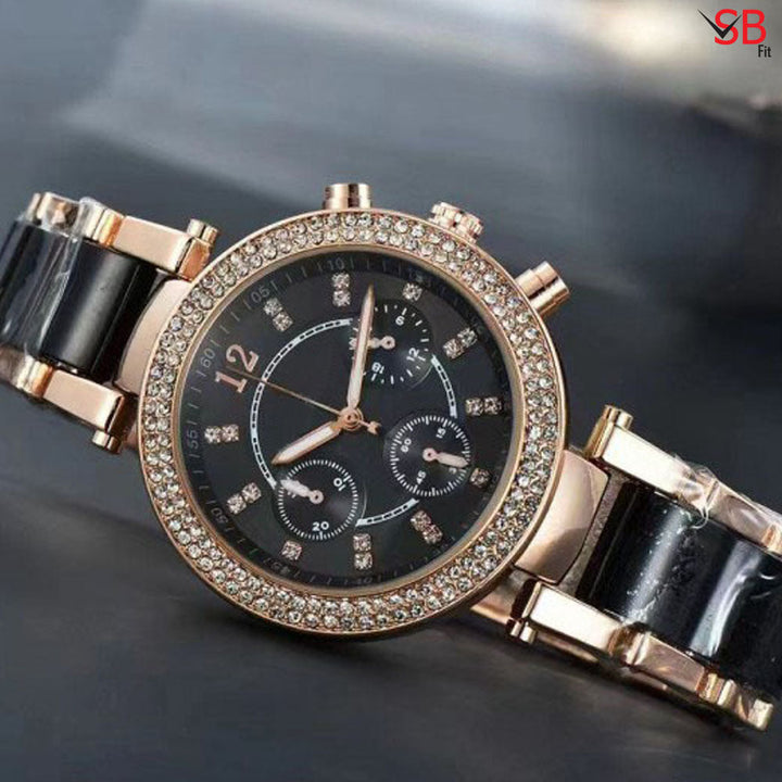 Stylish Rose Gold Double Stones Stainless Steel Watch For Women